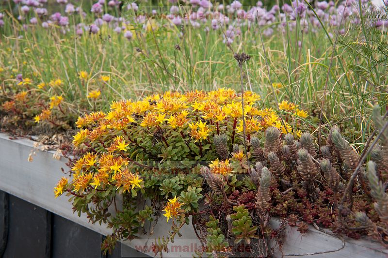 Dachbegrünung, Gründach, Flachdach, Sedum, Substrat, Lavaasche, Mutterboden, Vegitation, extensiv, Fetthenne, Schnittlauch, Dachhaut, Wurzelschicht